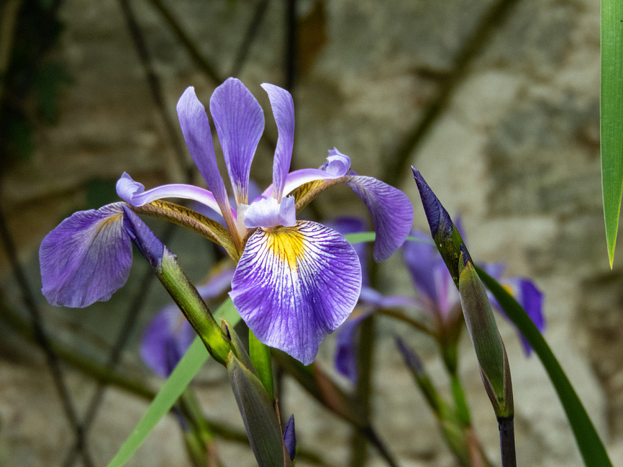 • яркими фиолетово – синими цветками, с желтыми и белыми вкраплениями. Высаживать такие ирисы предпочтительно на затененных участках в количестве от 5 до 9 кустов на метр квадратный, чтобы они дольше радовали своим цветением. Джералд Дарби влаголюбивы, но не любят сильного переувлажнения. Цветок неприхотливый и хорошо разрастается.