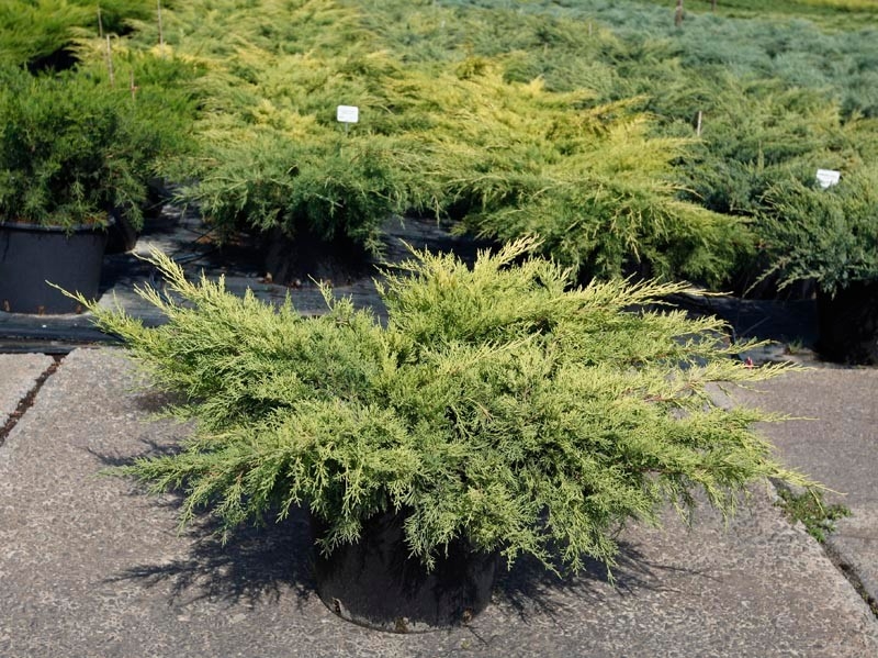 Саженцы можжевельника среднего Пфитцериана Ауреа (Pfizeriana Aurea) – это вечнозеленый кустарник с густой плотной кроной, что обеспечивает ему почетное место в нижнем ярусе ландшафтных композиций. Явных недостатков у крупномеров данного вида не выявлено, а наличие достоинств очевидно: