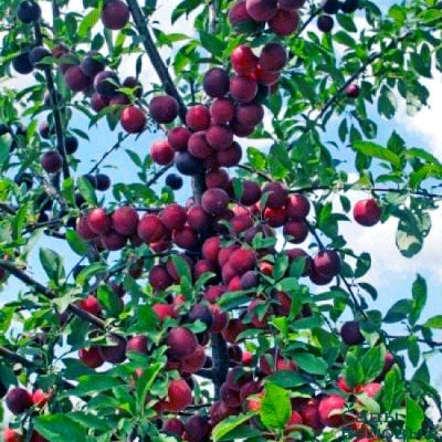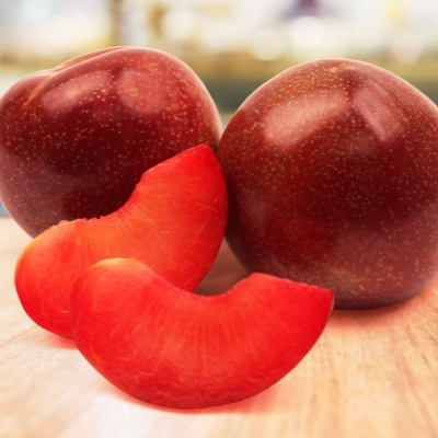 Саженцы шарафуги (гибрида) Вельвет Санрайз (Velvet Sunrise) вырастут в среднерослые плодовые деревья около 3 метров в высоту. Это растение называют сливой, что не совсем верно. Шарафуга – гибрид сливы, абрикоса и персика. Эти фрукты считают южными. Однако, благодаря селекционерам, получилось морозостойкое дерево с высоким иммунитетом к заболеваниям и вредителям. Если в соседстве посадить дерево-опылитель, в возрасте 4 лет в конце июля саженец начнёт плодоносить. При простом уходе дерево ежегодно будет приносить урожай из тёмно-фиолетовых фруктов, достигающих в диаметре 6-8 сантиметров.